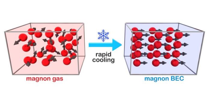 Die rasche Abkühlung von Magnon-Partikeln erweist sich als überraschend effektive Methode, um einen schwer fassbaren Quantenzustand der Materie, ein so genanntes Bose-Einstein-Kondensat, zu erzeugen. Diese Erkenntnis kann dazu beitragen, die quantenphysikalische Forschung voranzutreiben und ist außerdem ein Schritt in Richtung des langfristigen Ziels des Quantencomputings bei Raumtemperatur.