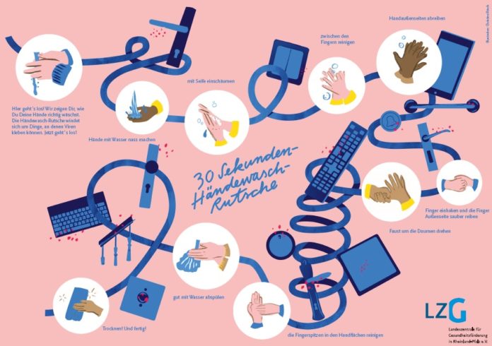 Regelmäßiges und gründliches Händewaschen schützt wirkungsvoll vor Infektionen, wenn es mit Wasser, Seife und etwas Geduld geschieht. Um besonders das medizinische Personal auf die Bedeutung des Händewaschens aufmerksam zu machen, initiierte die Weltgesundheitsorganisation 2009 den Internationalen Tag der Händehygiene. „In diesem Jahr ist die Botschaft aktueller denn je. Sie richtet sich nicht nur an die Beschäftigten in Medizin und Pflege, sondern an uns alle: Händewaschen gehört zu den wichtigsten Maßnahmen, mit denen wir der Corona-Pandemie entgegentreten und uns vor der Virusübertragung schützen können“, sagt Prof. Dr. Ursula Rieke, Vorsitzende der Landeszentrale für Gesundheitsförderung in Rheinland-Pfalz e.V. (LZG). Ein Poster, das die LZG zum Download zur Verfügung stellt, zeigt anhand einer 30-Sekunden-Händewaschrutsche, wie Händehygiene richtig geht.