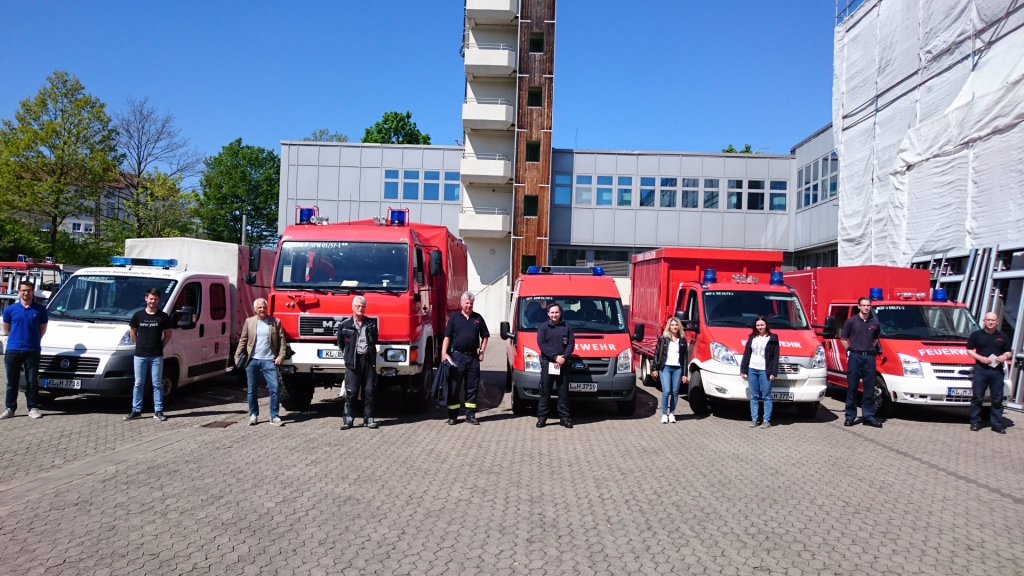 Bild 1: Die fünf Fahrzeuge der Feuerwehr, die für den Transport der Hygienemitteln nach Langenlonsheim benötigt wurden