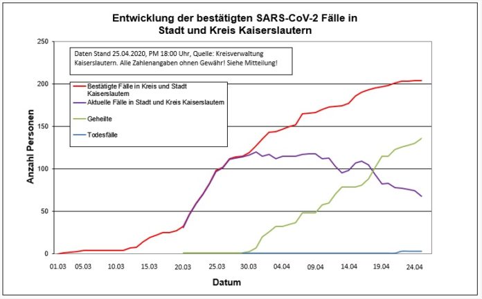 Damit liegt die Zahl der Indexfälle in Stadt und Landkreis Kaiserslautern weiterhin bei 204.
