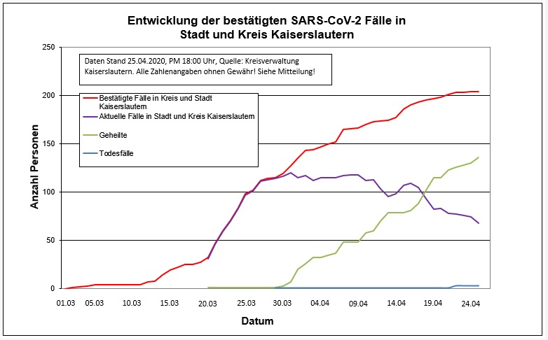 KL – Coronavirus: 204 Personen positiv getestet, 136 geheilt, 3 Person verstorben, 25. April, 18:00 Uhr