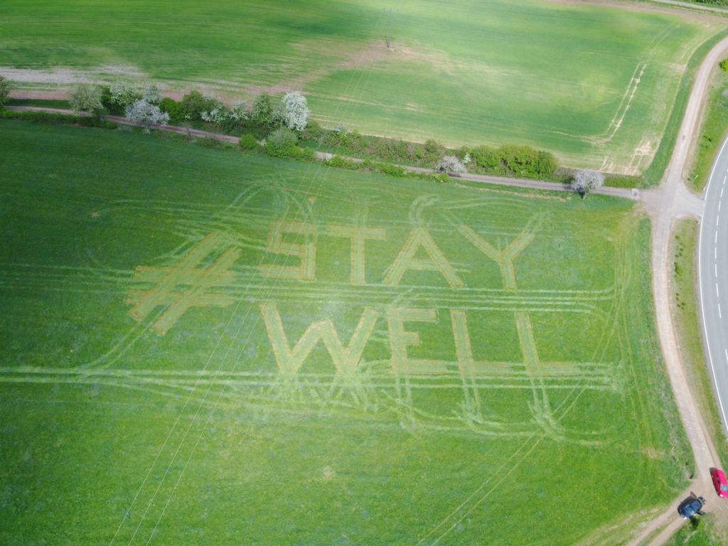Bu: 15 Meter hoch, neun Meter breit: der Wunsch „bleib gesund“ von Mitarbeitern des Hofguts Neumühle in die Wiese gemäht