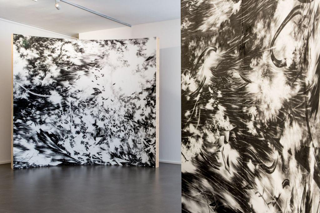 Es sind Werke der Gegensätzlichkeit. Ihre Arbeiten haben mitunter eine monumentale Größe und strahlen dennoch etwas flüchtig Zartes aus. Rahmenlos wuchern sie über das Papier hinweg und besetzen den Raum. Für den Moment eingefrorene Prozesse – wie Wind, der durch Wolken fegt, die Nacht durchdringendes Licht oder auseinanderberstende Erde – verschaffen sich auf energische Weise Raum und führen zu einem vielschichtigen Erleben, weit über das des Sehens und Denkens hinaus.