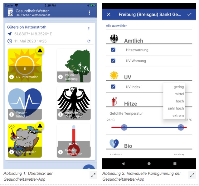Millionen Menschen in Deutschland leiden unter Pollenallergien, reagieren bei bestimmten Wetterlagen mit gesundheitlichen Beeinträchtigungen oder müssen sich bei der Arbeit und in der Freizeit vor Sonnenbrand oder Hitze schützen. Das Wetter kann aber nicht nur gefährliche oder störende gesundheitliche Auswirkungen auf viele Menschen haben, sondern wirkt sich in der Folge zum Beispiel durch mehr Krankentage bei Beschäftigten auch negativ auf die Wirtschaft in Deutschland aus. Der Deutsche Wetterdienst (DWD) hat deshalb jetzt eine neue App entwickelt, die tagesaktuell über mögliche beeinträchtigende Einflüsse des Wetters auf den Menschen informiert und vor Gesundheitsgefahren zum Beispiel durch Hitze warnt.