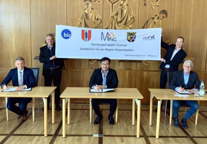 Im Rahmen der Corona-Pandemie wollen sowohl der Landkreis Kaiserslautern wie auch die Stadt Kaiserslautern dafür sorgen, dass der medizinische Bereich wie z.B. Arztpraxen, Physiotherapeuten, Pflegeinrichtungen oder auch andere Dienstleister sich möglichst problemlos mit ausreichend persönlicher Schutzausrüstung (PSA) und Medizinprodukten ausstatten können. Landrat Ralf Leßmeister und Oberbürgermeister Klaus Weichel unterzeichneten mit der in Kaiserslautern ansässigen MING Innovation GmbH einen Kooperationsvertrag zur PSA-Vermarktung. MING übernimmt die Beschaffung, Qualitätskontrolle und Einfuhr der Ware aus China und weiterer Drittanbieter.