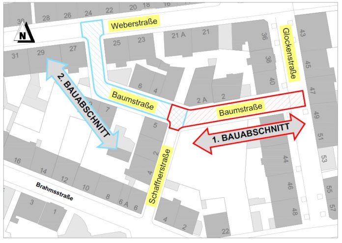 Ab voraussichtlich 8. Juni 2020 bis ca. Mitte Oktober 2020 wird durch die Stadtentwässerung Kaiserslautern der Kanal in der Baumstraße erneuert. In diesem Zeitraum muss die Baumstraße abschnittsweise von Glocken- bis Schaffnerstraße und nachfolgend von Weber- bis Schaffnerstraße voll gesperrt werden. Die Glocken- und Weberstraße werden zu Beginn der Bauabschnitte kurzzeitig voll gesperrt. Fußgängerverkehr ist hiervon nicht betroffen. Die Anwohner werden zusätzlich informiert.