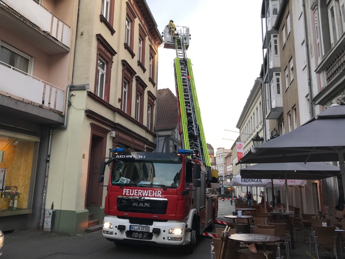 Weil von einem Haus in der Altstadt Dachziegeln herabstürzten, war am Dienstagabend ein Teil der Steinstraße gesperrt. Aus bislang nicht geklärten Gründen fielen vom Dach des Anwesens Ziegeln auf die Straße. In unmittelbarer Nähe befand sich der Freisitz eines Gastronomiebetriebs. Die Gäste mussten vorsorglich ihre Plätze räumen, damit sie nicht von Dachziegeln getroffen wurden. Verletzt wurde niemand. Mit einer Drehleiter entfernte die Feuerwehr noch lose Ziegeln vom Dach.