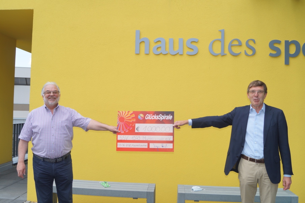 1.000 Euro aus den Mitteln der Glücksspirale des Landessportbundes (LSB) Rheinland-Pfalz hat jetzt der Schwimmsportverein (SSV) Mutterstadt erhalten. Hartmut Emrich, Vizepräsident des Sportbundes Pfalz, überreichte den Scheck an den stellvertretenden Vorsitzenden des SSV, Dr. Ralf Wiebe. Der SSV Mutterstadt nutzt das Kreisbad Aquabella in Mutterstadt für Training und Wettkampf. „In unserem Verein schwimmen derzeit etwa 120 Schwimmer*innen in acht Gruppen im Alter ab 5 Jahren, montags, dienstags, mittwochs und samstags.