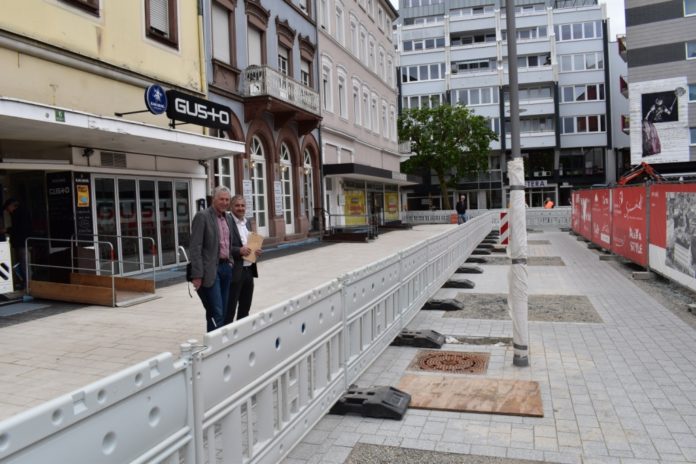 BU: Machten sich ein Bild vom Forschritt der Arbeiten auf dem Schillerplatz: Baudezernent Peter Kiefer und Sebastian Staab, Leiter des Referats Tiefbau