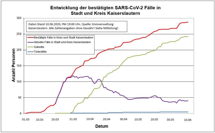Zurzeit gibt es 287 Indexfälle in Stadt und Landkreis Kaiserslautern. Aufgrund landeseinheitlicher RKI-Vorgaben werden die 242 genesenen Personen und die mittlerweile 5 Todesfälle jedoch weiter in der Gesamtstatistik der positiven Fälle weiter mitgeführt.