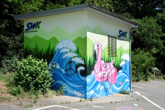 Erst vor wenigen Tagen hat der Graffiti-Künstler Daniel Ferino aus Eich bei Alzey im Auftrag der SWK Stadtwerke Kaiserslautern Versorgungs-AG die Trafostation an der Waschmühle kreativ und farbenfroh gestaltet. Schon kurze Zeit später wurden erste Schmierereien entdeckt. Die SWK freuen sich über sachdienliche Hinweise, die zur Ermittlung des Täters oder der Täter führen. Bereits seit längerem versuchen die Stadtwerke, durch Folierungen, Bemalungen oder kunstvolle Graffitis zahlreiche Verteilkästen und Trafostationen und damit auch das Stadtbild etwas bunter und farbenfroher zu gestalten.