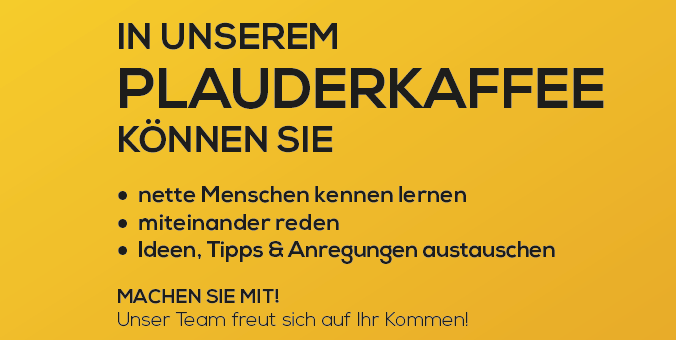 Auch das PlauderKaffee startet am 26. Juni um 16 Uhr wieder. Dort ist jeder willkommen und kann nette Menschen kennen lernen. Es wird miteinander geplaudert, aber auch Ideen, Tipps und Anregungen ausgetauscht.