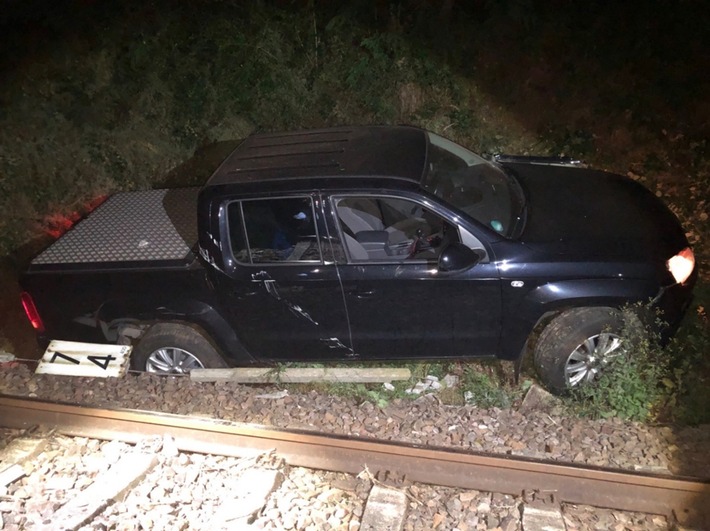 Ein Pkw ist in der Nacht zum Mittwoch auf der Bundesstraße 48 zwischen Münchweiler an der Alsenz und Enkenbach-Alsenborn von der Straße abgekommen und etwa sechs Meter in die Tiefe auf Bahngleise gestürzt. Wegen überhöhter Geschwindigkeit und einem Atemalkoholwert von 1,17 Promille verlor ein 20-jähriger Autofahrer zur Mitternachtsstunde die Kontrolle über seinen Pickup. Im Bereich der Eselsmühle wollte der Mann in die Alsenzstraße abbiegen. Dabei kam er mit dem Wagen von der Fahrbahn ab.