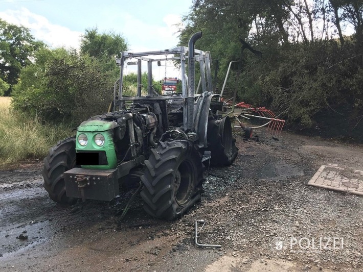 Katzweiler – Aus ungeklärter Ursache ist am Mittwochnachmittag auf einem Feldweg zwischen Katzweiler und Stockborn ein Traktor in Brand geraten.
