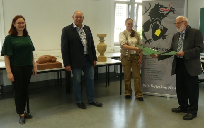 Die Bauhütte der Pfalz hat zwei Schülerinnen der Meisterschule für Handwerker in Kaiserslautern (MHK) mit dem diesjährigen Ausbildungspreis ausgezeichnet, die damit ihre Gesellenprüfung abgelegt haben; er ist jeweils mit 500 Euro dotiert. Tamara Niedtner, 1998 in Leipzig geboren, gestaltete ein 49 Zentimeter hohes, 39 Zentimeter breites und 23 Zentimeter dickes Herz als Bildhauerstück aus Oberschlettenbacher Sandstein. Melanie Greif, die 1987 in Neustadt an der Weinstraße geboren wurde, fertigte einen Baluster aus Obersulzbacher Sandstein; die Säule ist 60 Zentimeter hoch und ihr Durchmesser beträgt 20 Zentimeter. Beide entwarfen ihre Stücke und stellten sie sodann in 52 Stunden manuell her.