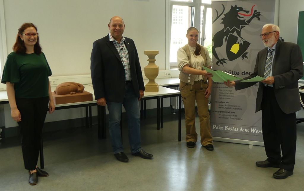 „Alle Arbeiten waren auf einem sehr hohen Niveau“, sagte Schulleiter Steffen Hemmer, so dass die Auswahl schwergefallen sei. „Dies macht mich aber auch stolz, denn es veranschaulicht die Qualität der Ausbildung.“ Er dankte der Bauhütte der Pfalz für die Bereitstellung der Preise. Hüttenmeister Klaus Daub hob hervor, dass der Preis eine „Anerkennung der Leistung sowie der Ausbildungsstätte“ sei. Gerade beim Denkmalschutz sei es wichtig, das Wissen um traditionelle Arbeitstechniken und historische Baustoffe zu erhalten. Die Preisträgerinnen hätten durch die „Passgenauigkeit und präzise Oberflächengestaltung“ ihrer Werkstücke überzeugt. Die Bauhütte der Pfalz bildet mit ihren fast 200 Mitgliedern eine Gemeinschaft von bauschaffenden Ingenieuren und Ingenieurinnen, Architekten und Architektinnen sowie bildenden Künstlern und Künstlerinnen, die seit 70 Jahren herausragende Bauvorhaben prämiert, in denen der Wahlspruch der Bauhütte „Dein Bestes dem Werk“ verwirklicht sei.