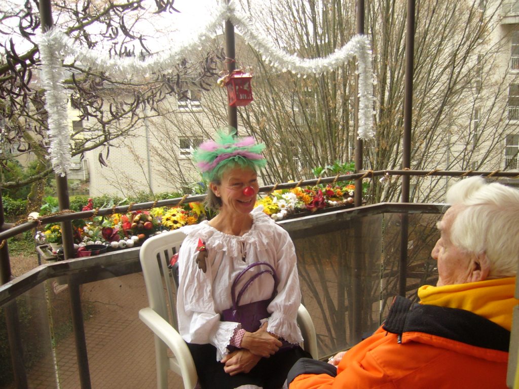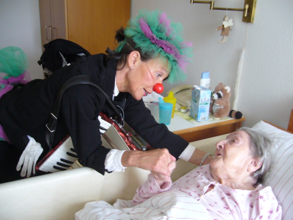 Die elf professionellen Clowns des Vereins besuchen regelmäßig acht Altenpflegeeinrichtungen. Ihr Spiel im direkten Kontakt mit den pflegebedürftigen alten Menschen verringert Stress, Ängste und depressive Stimmungen und verwandelt die Atmosphäre in eine Welt der Freude und Leichtigkeit. Auch wenn in Zeiten von Corona Abstand eingehalten werden muss und die Besuche nicht wie üblich stattfinden können, halten die Clowns die Verbindung zu „ihren Senior*innen“ und sind mit Clownsvisiten vor den Einrichtungen, in Höfen und Gärten präsent.
