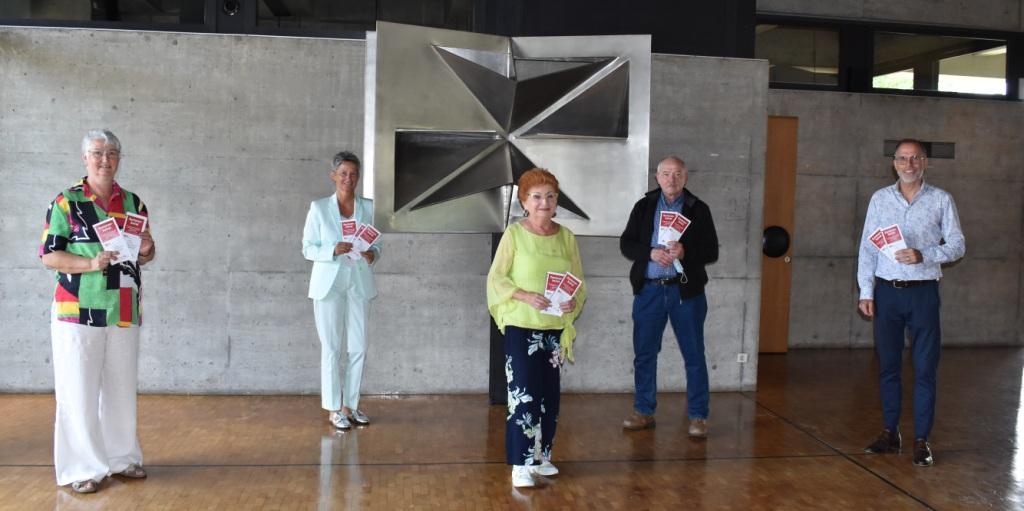 BU: Werben für ein Engagement im neuen Seniorenbeirat (von links): Gabriele Kettern-Stang von der Seniorenberatung der Stadtverwaltung, Bürgermeisterin Beate Kimmel, die Beiratsvorsitzende Helga Bäcker, der stellvertretende Vorsitzende Hans-Joachim Vögler und Sozialreferatsleiter Christian Littek.