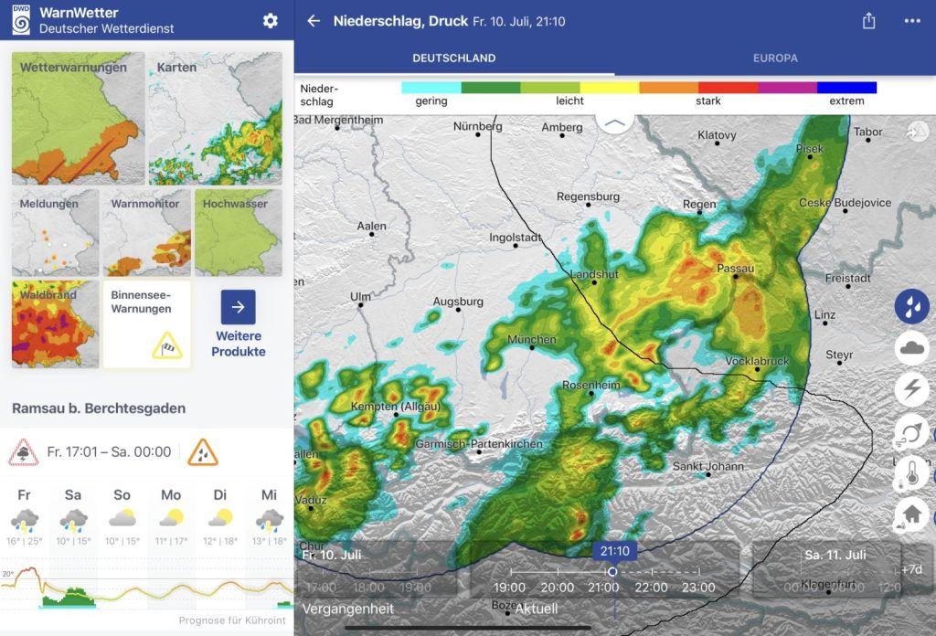 Die Hauptfunktionen der Vollversion der WarnWetter-App des DWD