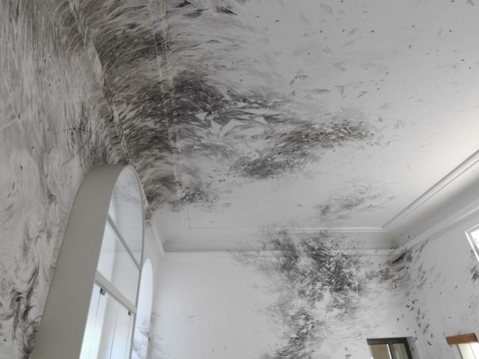 Bu: Julia Steiner malte diese Gouache Anfang des Jahres auf die Wand im Foyer des mpk: Detail aus „all around now“