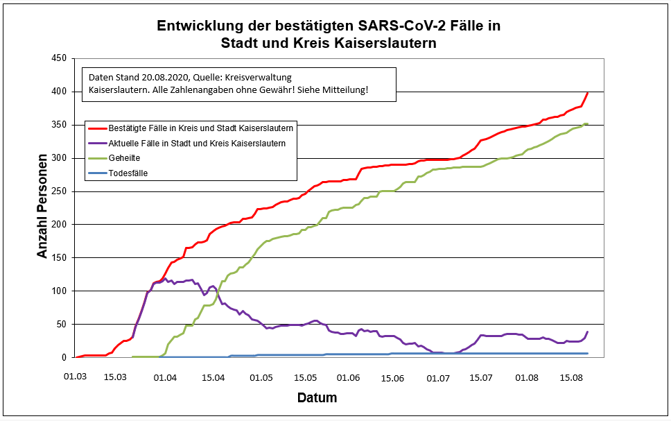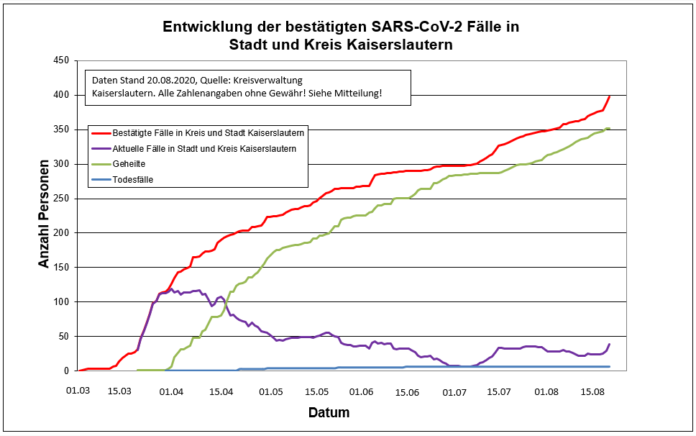 KL – Coronavirus: 397 Personen positiv getestet, 352 geheilt, 6 Personen verstorben, 20.08.20.