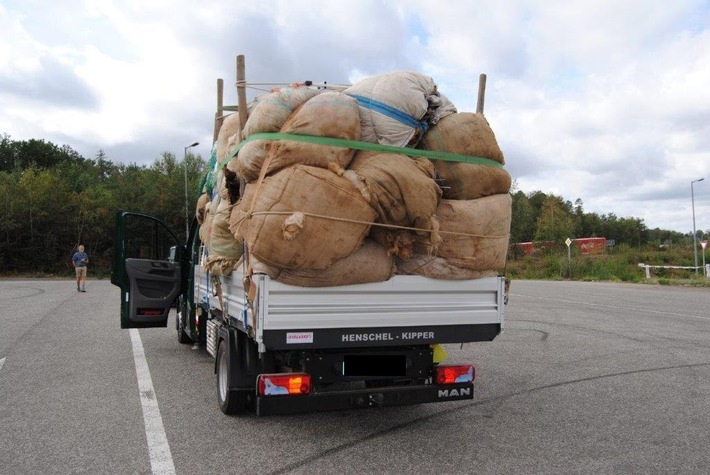 Beamten der Schwerverkehrsüberwachung fiel am Montagmittag ein Klein-Lkw auf, der in abenteuerlicher Weise mehrere Ballen Schafswolle transportierte. Das Fahrzeug wurde auf dem Parkplatz „Schweinsdell“ an der A6 angehalten und kontrolliert. Die weit über die Bordwände hinausragende Fracht war durch Zaunpfosten aus Holz und ohne jegliches System unzureichend gesichert und wurde teilweise auch lediglich durch Hanfseile auf der Ladefläche gehalten. Dem 58 jährigen Fahrer wurde deshalb die Weiterfahrt untersagt. Gegen ihn wurde ein Bußgeldverfahren eingeleitet.|zvd