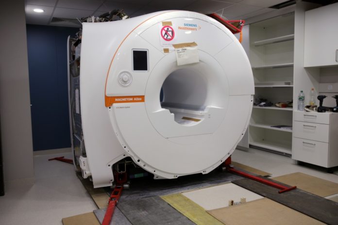 Seit 1. September ist im Westpfalz-Klinikum in Kusel ein 1,5-Tesla-Magnetresonanztomograf (MRT) der Marke Siemens im Einsatz. „Mit dem neuen MRT erweitern und optimieren wir unser Untersuchungsspektrum“, sagt Dr. med. Andreas Großhans, Leitender Arzt des Instituts für Radiologie in Kusel. Ob bei Untersuchungen von Nervensystem, Gehirn, Rückenmark, Skelettsystem und Wirbelsäule oder bei Untersuchungen der Inneren Organe und des Gefäßsystem – das Gerät füllt eine Lücke, die vorher bestand. „MRT-Untersuchungen gehören in der Diagnostik zum Standard“, erläutert Dr. Großhans.