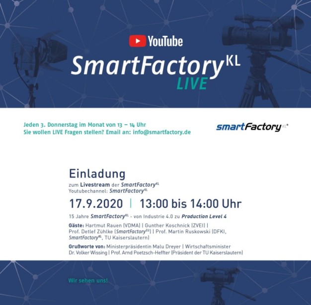 Die Ausstrahlung erfolgt über unseren Youtube-Channel: SmartFactoryKL