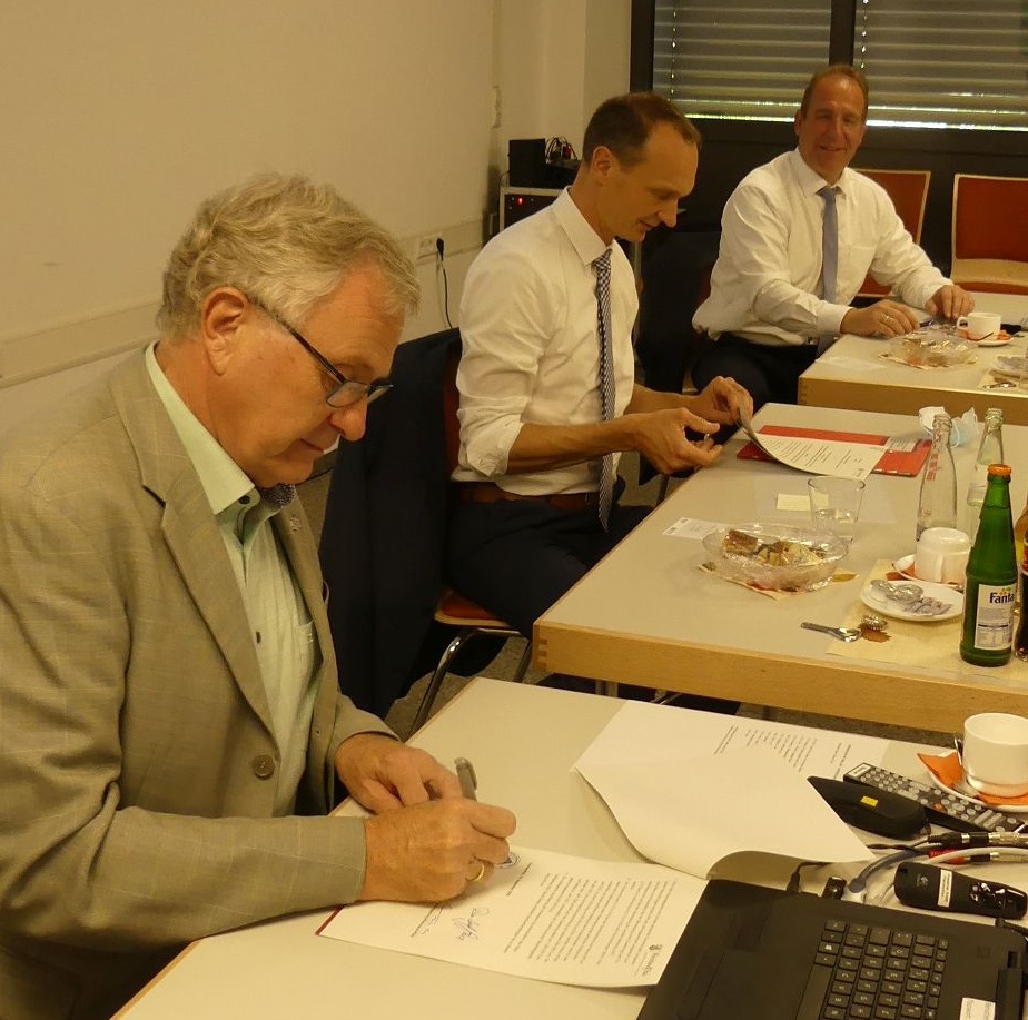 Wieder dankte allen Beteiligten im Finanz- und Innenministerium sowie in der Zentralverwaltung des Bezirksverbands Pfalz, die diese „vertretbare Lösung“ herbeigeführt hätten. Auch Staatssekretär Randolf Stich vom Innenministerium sprach von einem „guten Ergebnis, das einen Ausgleich der Interessen“ bringe. „Die Vereinbarung bildet künftig eine hervorragende Basis für den Bezirksverband Pfalz und gibt ihm Planungssicherheit“, so Stich. Das Thema sei im Finanzministerium „immer sehr wichtig und strittig“ gewesen, sagte Staatssekretär Dr. Stephan Weinberg. Man habe nun „einen guten Weg auch für die Sonderlasten des Bezirksverbands Pfalz gefunden“.