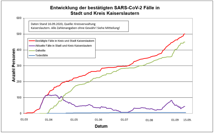 Zurzeit gibt es 501 Indexfälle in Stadt und Landkreis Kaiserslautern. Aufgrund landeseinheitlicher RKI-Vorgaben werden die 450 genesenen Personen und die mittlerweile 6 Todesfälle jedoch weiter in der Gesamtstatistik der positiven Fälle weiter mitgeführt.