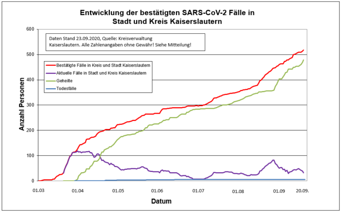 Aktuell sind 32 Personen an Corona erkrankt. Zurzeit gibt es 517 Indexfälle in Stadt und Landkreis Kaiserslautern. Aufgrund landeseinheitlicher RKI-Vorgaben werden die 479 genesenen Personen und die mittlerweile 6 Todesfälle jedoch weiter in der Gesamtstatistik der positiven Fälle weiter mitgeführt.