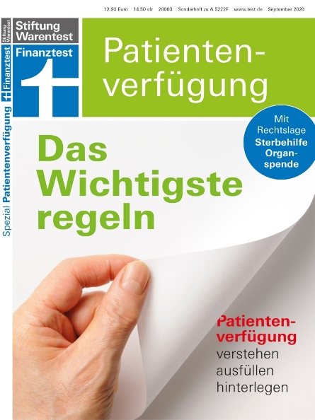 Das Finanztest Spezial Patientenverfügung hat 112 Seiten und ist ab dem 26. September 2020 für 12,90 Euro im Handel erhältlich oder kann online bestellt werden unter