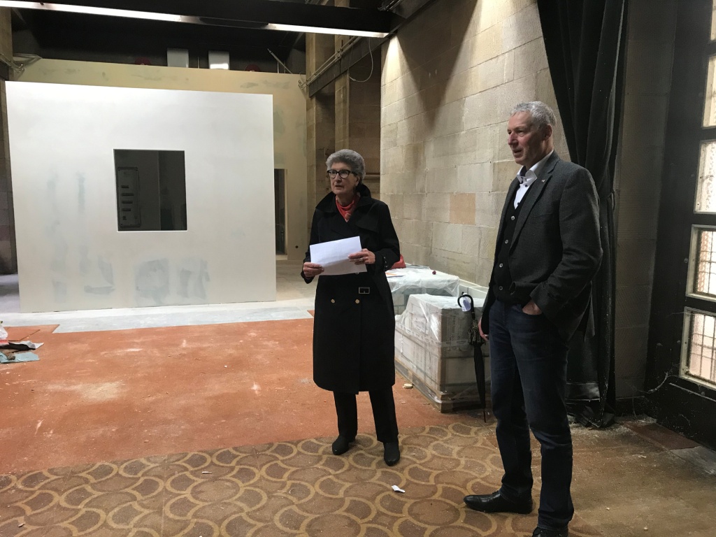 Bild: Karin Kolb und Peter Kiefer machen sich ein Bild von den Bauarbeiten in der Friedenskapelle