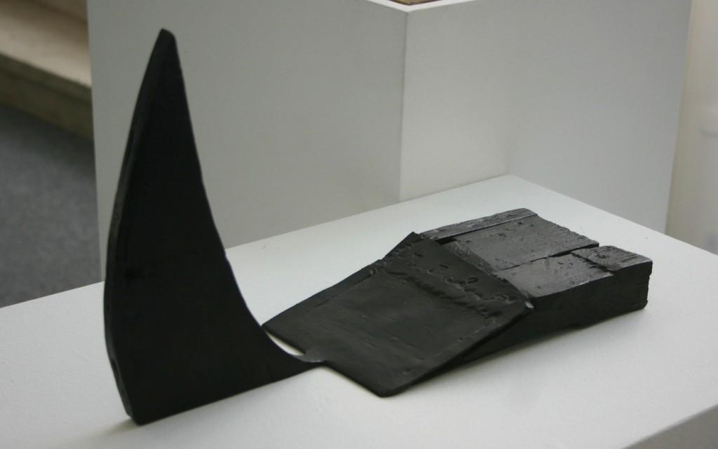 Das gilt auch für ein sehr viel kleineres Werk: Die Bronze „Nr. 1/1973“ weist einige Übergänge auf; so bleibt die Gussvorlage in ihrer ursprünglichen Materialität als Verbindung von Metall und Holz sichtbar. Dann wechselt sie die Ausrichtung von aufragend zu einem flachen Liegen. Die spitze Segelform ragt in den Raum. Dr. Claudia Gross geht der Frage nach, ob sich deshalb mit dieser archaisch wirkenden Figur der Raum tatsächlich verändert und erläutert, welche Überlegungen zum Raum hinter dieser Arbeit stehen.