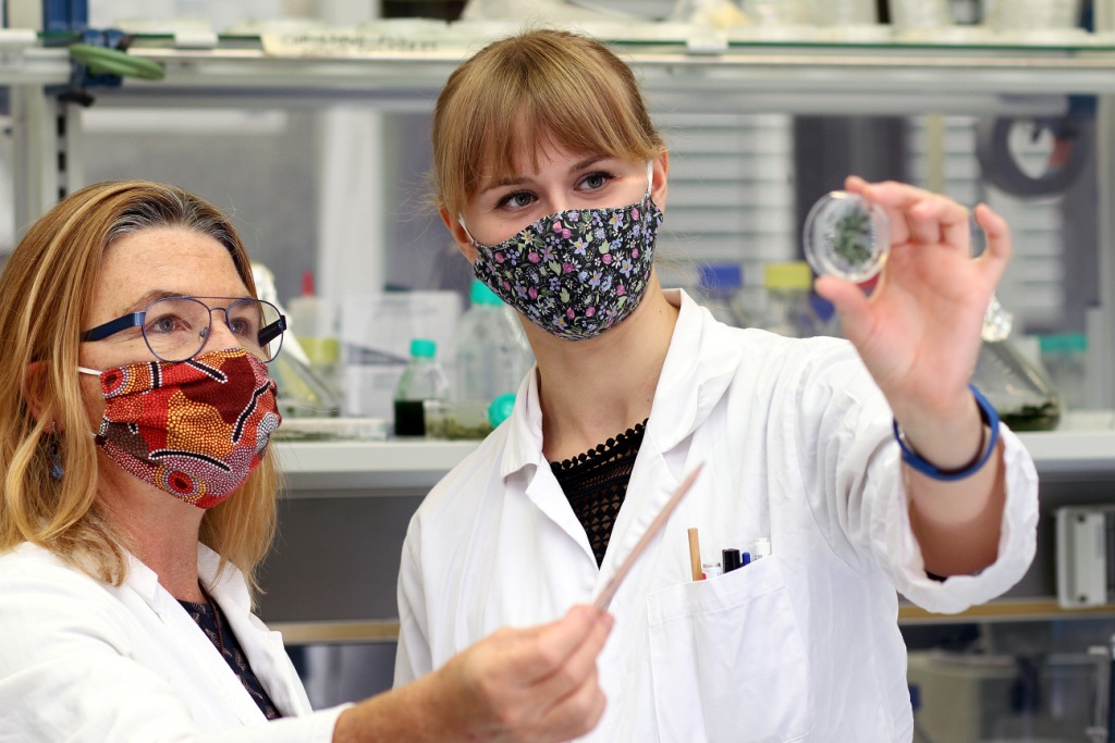 Pressefoto: Abgebildet sind Dr. Michelle Gehringer (links) und ihre Masterstudentin Katharina Ebel (rechts).