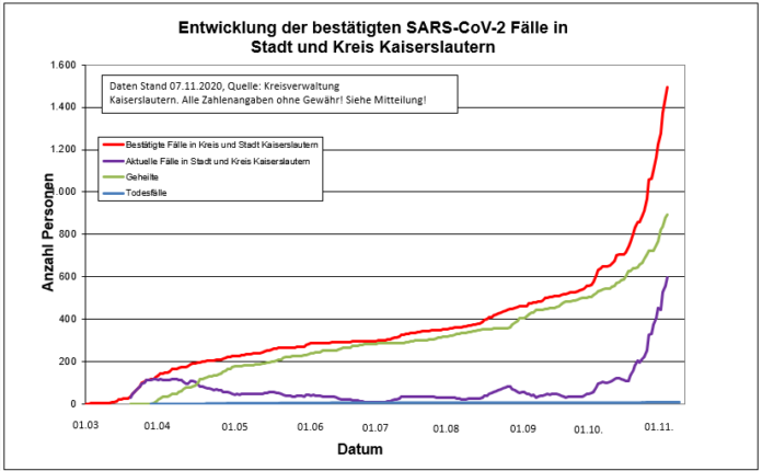 Insgesamt wurden bislang 1496 Indexfälle in Stadt und Landkreis Kaiserslautern registriert.