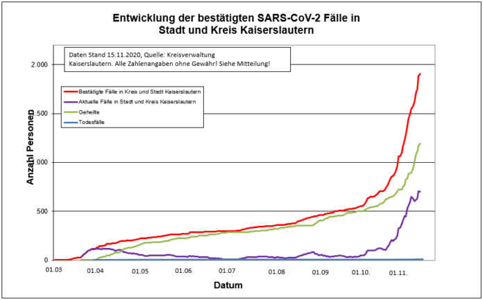 Insgesamt wurden bislang 1.954 Indexfälle in Stadt und Landkreis Kaiserslautern registriert.