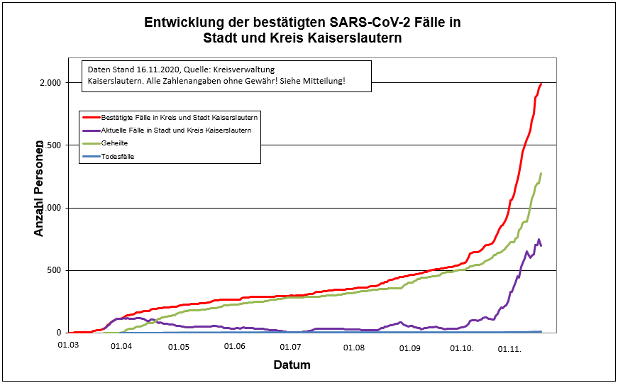 Insgesamt wurden bislang 1.989 Indexfälle in Stadt und Landkreis Kaiserslautern registriert.