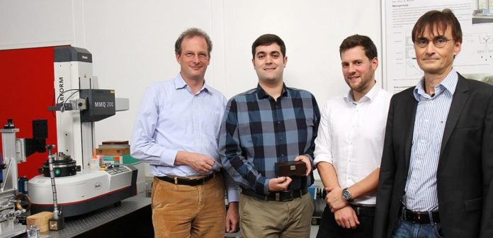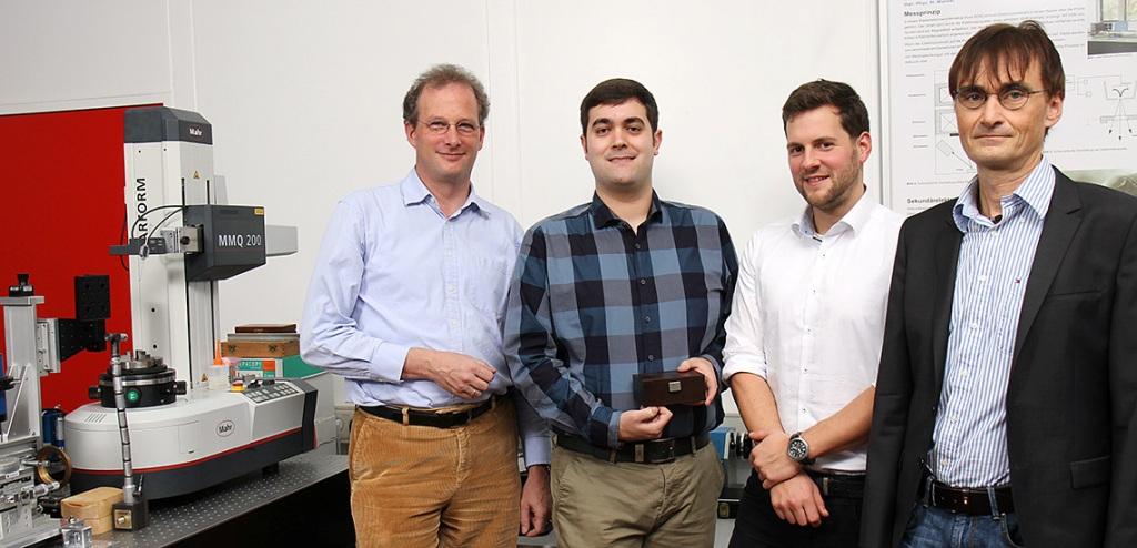 Das Foto zeigt das Team von Opti-Cal: (v.l.n.r.) Prof. Dr. Georg von Freymann, Dr. Matthias Eifler, Julian Hering und Prof. Dr. Jörg Seewig. Quelle: TUK/Koziel