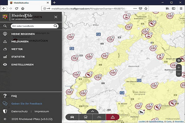 Das Verkehrsministerium hat mit dem digitalen Mobilitätsatlas viele Daten zur Mobilität im Land erstmals in einem einheitlichen Angebot zusammengeführt. Nutzer finden Informationen zu Baustellen und zur Verkehrslage auf der Straße, zu Fahrplanabweichungen im ÖPNV, zu Bauprojekten, zu Verkehrsbelastungen, zu Unfallschwerpunkten, zur Elektromobilität, zum Radverkehr und vieles mehr. Auch der Radroutenplaner ist als zusätzlicher Service integriert und liefert Radrouten von Tür zu Tür. Der Mobilitätsatlas ist über www.verkehr.rlp.de abrufbar und läuft auf allen Plattformen, vom Handy bis zum Computer.