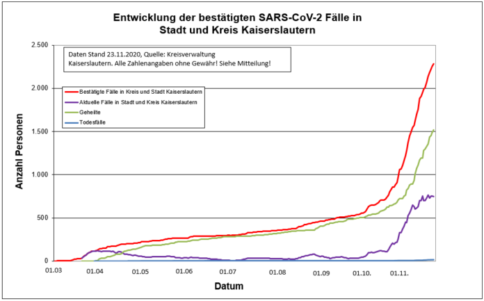 2.284 Indexfälle in Stadt und Landkreis, 1.517 genesenen Personen, 23.11.