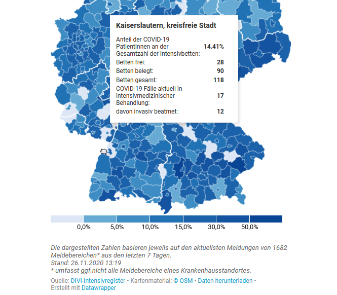 Quelle: DIVI-Intensivregister Kartenmaterial: © OSM Daten herunterladen Erstellt mit Datawrapper