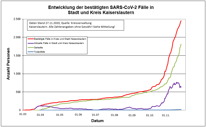 2.457 Indexfälle in Stadt und Landkreis, 1.808 genesenen Personen, 21 Todesfälle, 27.11.2020