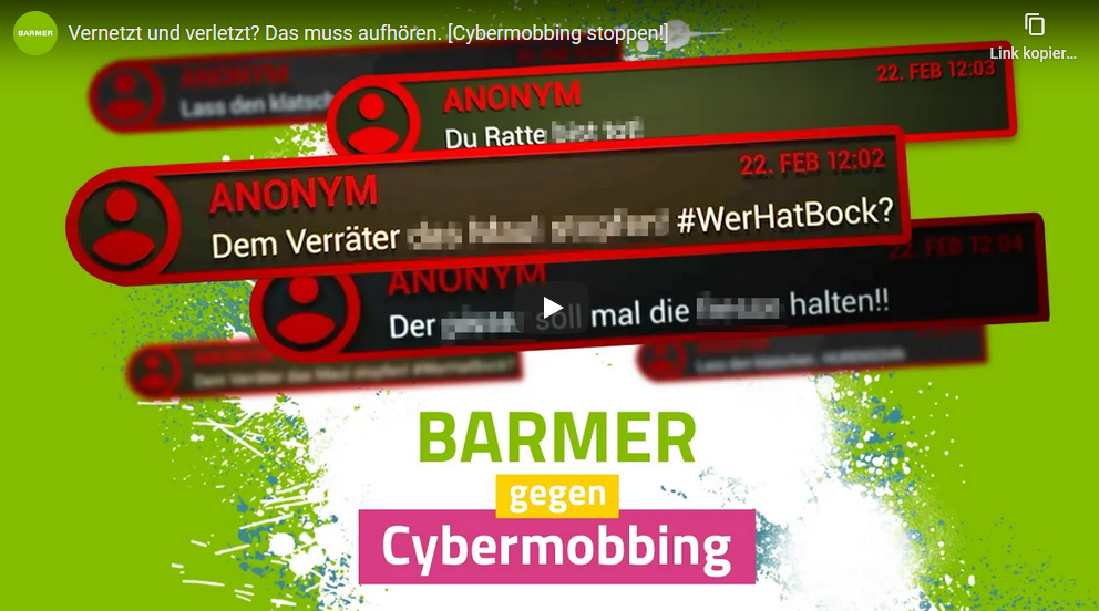 Mehr über Cybermobbing und ein Erklärvideo unter: www.barmer.de/cybermobbing.