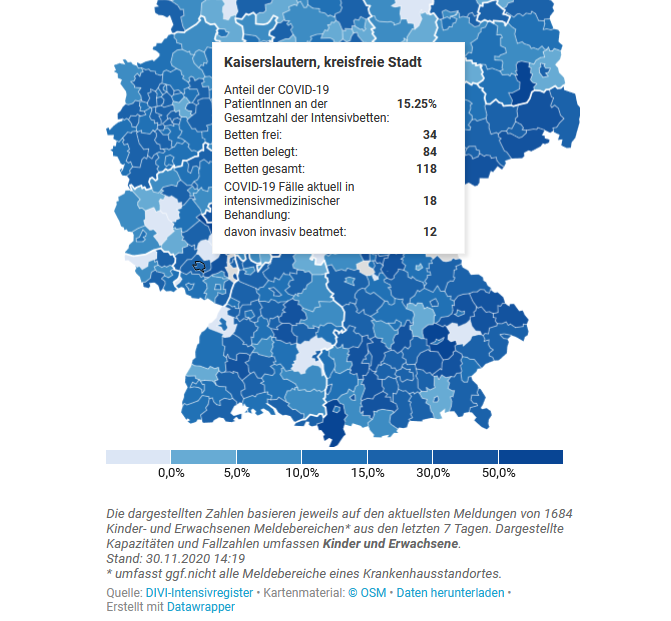 Quelle: DIVI-Intensivregister Kartenmaterial: © OSM Daten herunterladen Erstellt mit Datawrapper