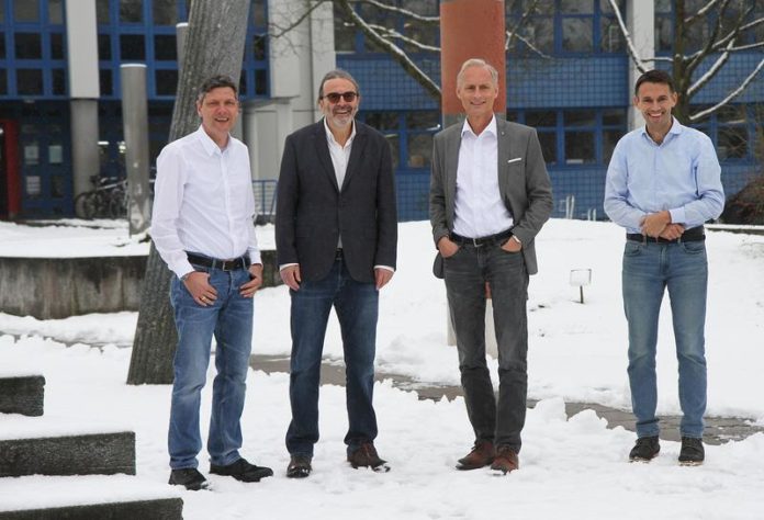 Bu: Freuen sich über die erfolgreiche Verlängerung: (v.l.n.r.) Prof. Dr. Sven Krumke, Dekan des Fachbereichs Mathematik der TU Kaiserslautern, Co-Sprecher Prof. Dr. Wolfram Decker, Sprecher Prof. Dr. Gunter Malle und Geschäftsführer Dr. Michael Kunte.