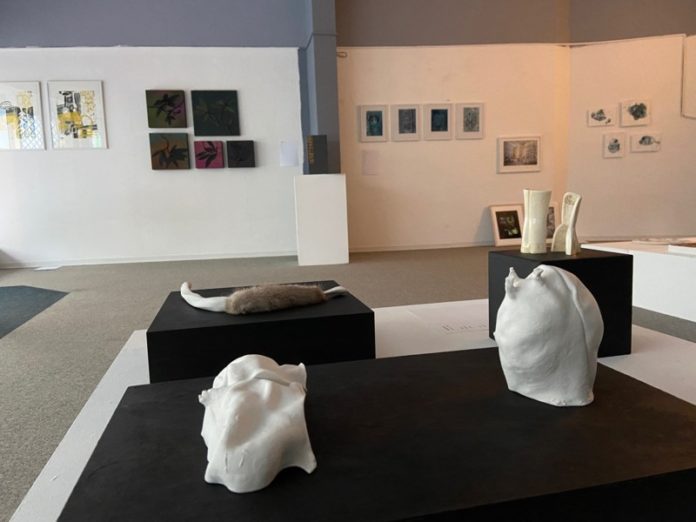 Schon bei der ersten Coronawelle hatte der Kunstverein KunstRaum die Idee, allen Künstlerinnen und Künstlern, die bisher dort ausgestellt haben, eine Plattform zum Verkauf von Kunstwerken zu bieten. Das sind einerseits Arbeiten, die man ähnlich schon in der jeweiligen Ausstellung sehen konnte, andererseits „kleinere“ Arbeiten, die eher erschwingliche Preise haben. Hinzugenommen wurden noch Künstlerinnen und Künstler aus dem Kreis der Mitglieder, so dass es eine inspirierende Sammlung künstlerischer Arbeiten in dem temporären Galerieraum zu sehen (und natürlich zu erwerben) gibt.