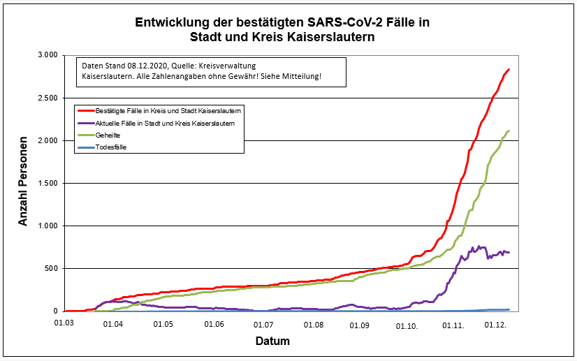2.831 Indexfälle in Stadt und Landkreis, 2.114 genesenen Personen, 23 Todesfälle, 08.12.2020