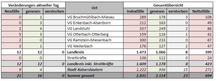 Die Angaben können abweichen von den Zahlen der Landesregierung RLP, das liegt lediglich an einer zeitlichen Verschiebung der Meldungen!