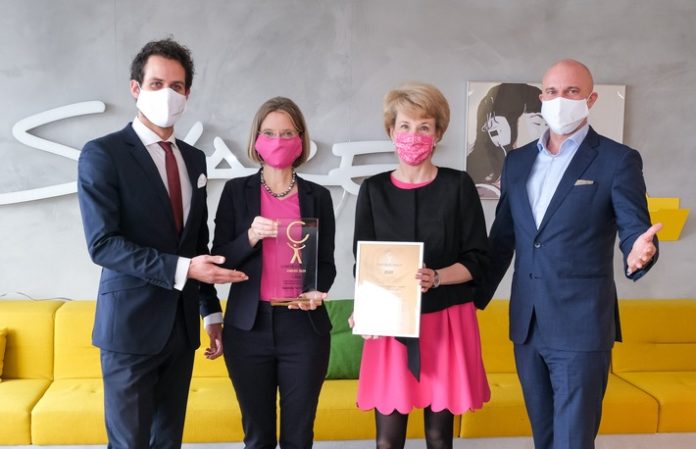 Verleihung des 12. Corporate Health Awards: betriebliches Gesundheitsmanagement im Zeichen der Corona-Pandemie / 352 Teilnehmer, 15 Branchen, 8 Sonderpreise. Und ein großer Gewinner: die Beschäftigten / Übergabe des Corporate Health Awards an die Deutsche Telekom AG in der Branche Informations- und Kommunikationstechnik v.r.n.l.: Steffen Klink (Director Corporate Health Award), Birgit Bohle (Vorständin Personal und Recht, Arbeitsdirektorin, Deutsche Telekom AG), Dr. Anne-Katrin Krempien (Leitende Ärztin, Deutsche Telekom AG), Markus A.W. Hoehner (CEO EUPD Research) / Weiterer Text über ots und www.presseportal.de/nr/143641 / Die Verwendung dieses Bildes ist für redaktionelle Zwecke honorarfrei. Veröffentlichung bitte unter Quellenangabe: „obs/Corporate Health Award/EUPD/EUPD“